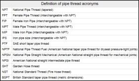 NST, BSPT, NPSI, etc.) Female NPT threads can be designated as "FPT" or "FIP" and male NPT